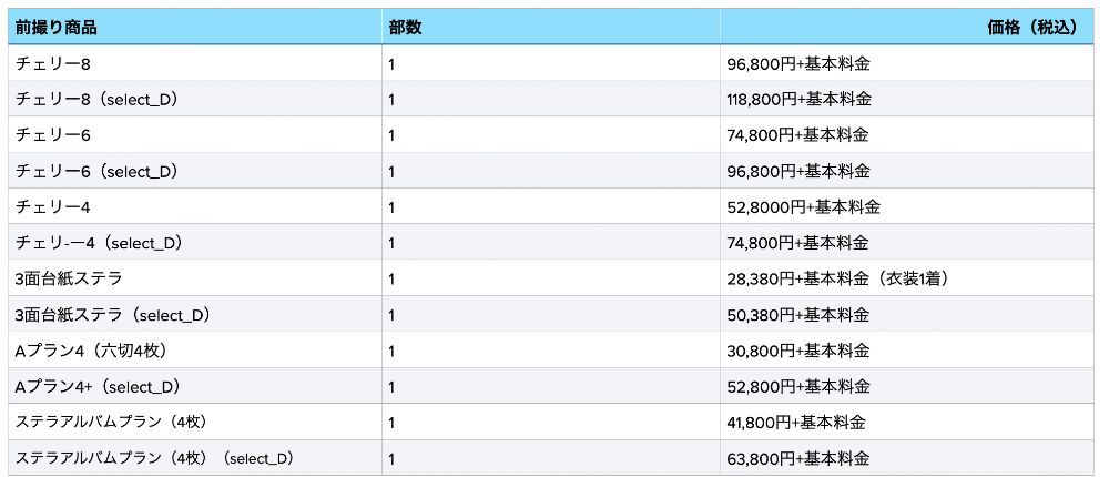 撮影料:14,500円+3面ステラ/データ付50,380円
